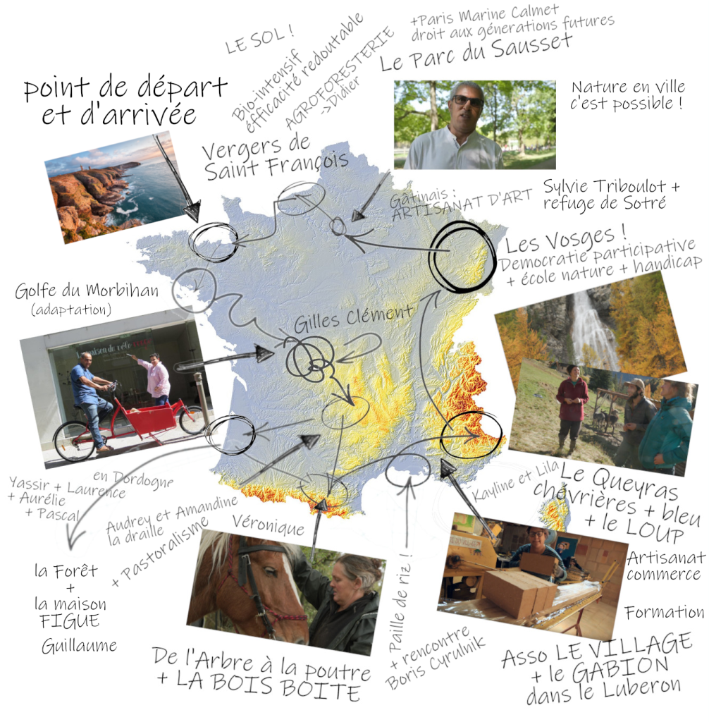 Moi, c’est Piel, la trentaine, jeune papa et enfin décidé à habiter cette terre. Mais où et comment habiter ? Comment habiter le paysage, mon paysage ? Et le paysage, tiens, est-ce une carte postale ou, au-delà, tout ce qui m’entoure ? Et peut-être même une seconde peau ? c’est décidé, je quitte la ville et pars là où j’ai le plus de chances de trouver ce que je cherche : sur les routes de France, à travers les Parcs naturels, décidé à m’inspirer, à me nourrir, à comprendre pourquoi et comment je résonne avec mon milieu pour mieux habiter mon paysage, savoir qui je suis et où et comment j’ai envie de voir grandir mon fils.
